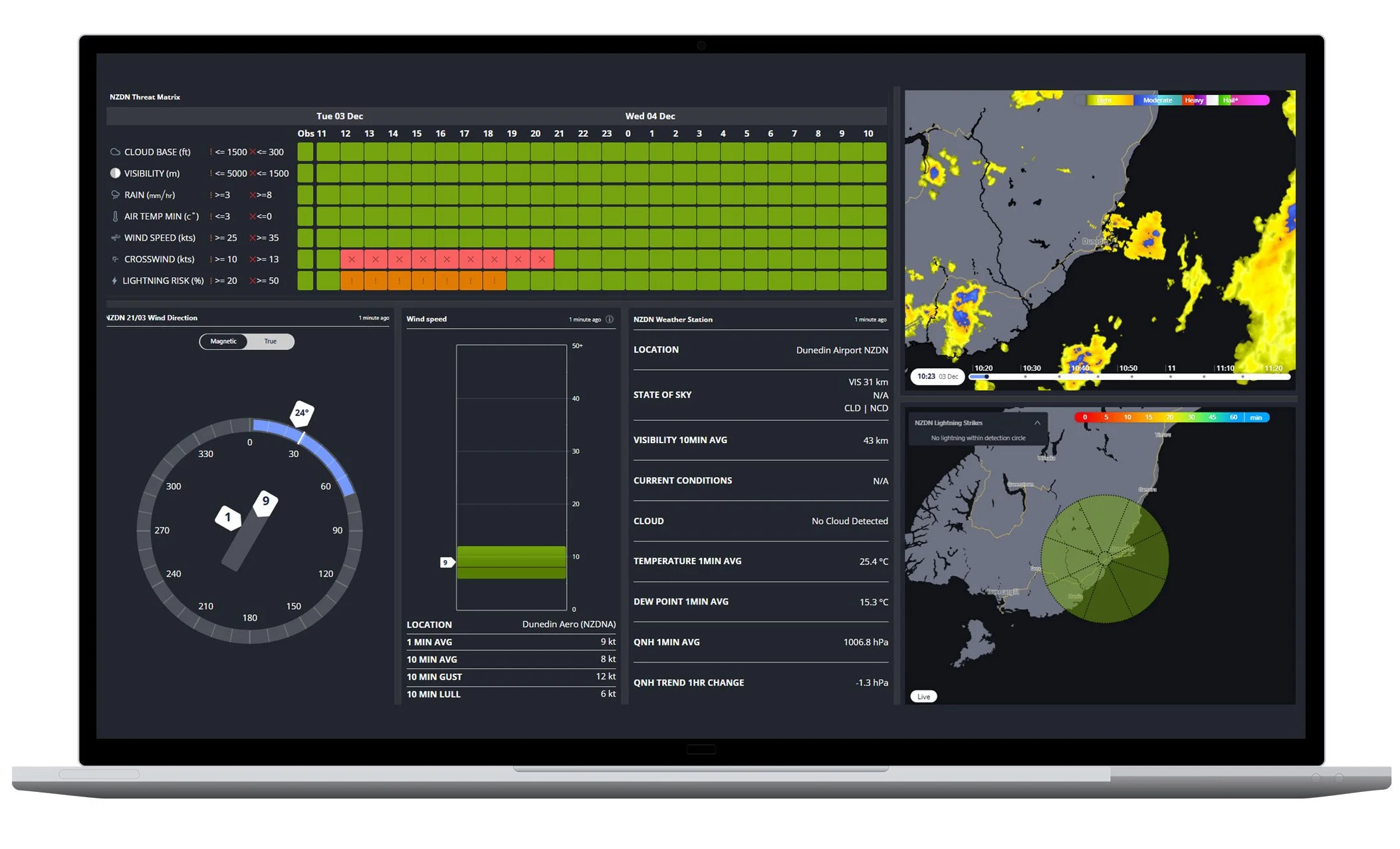 Displaying just as well on the large screens of an operation centre as they do on your mobile, our Aviation Dashboards can be customised to include any number of widgets - each rich with the meteorological observations and forecasts pertinent to your operation. Aviation Dashboards are configured to your specific needs - enabling smarter, data-driven decisions. Our aviation weather widgets include: